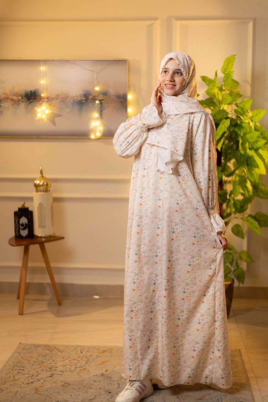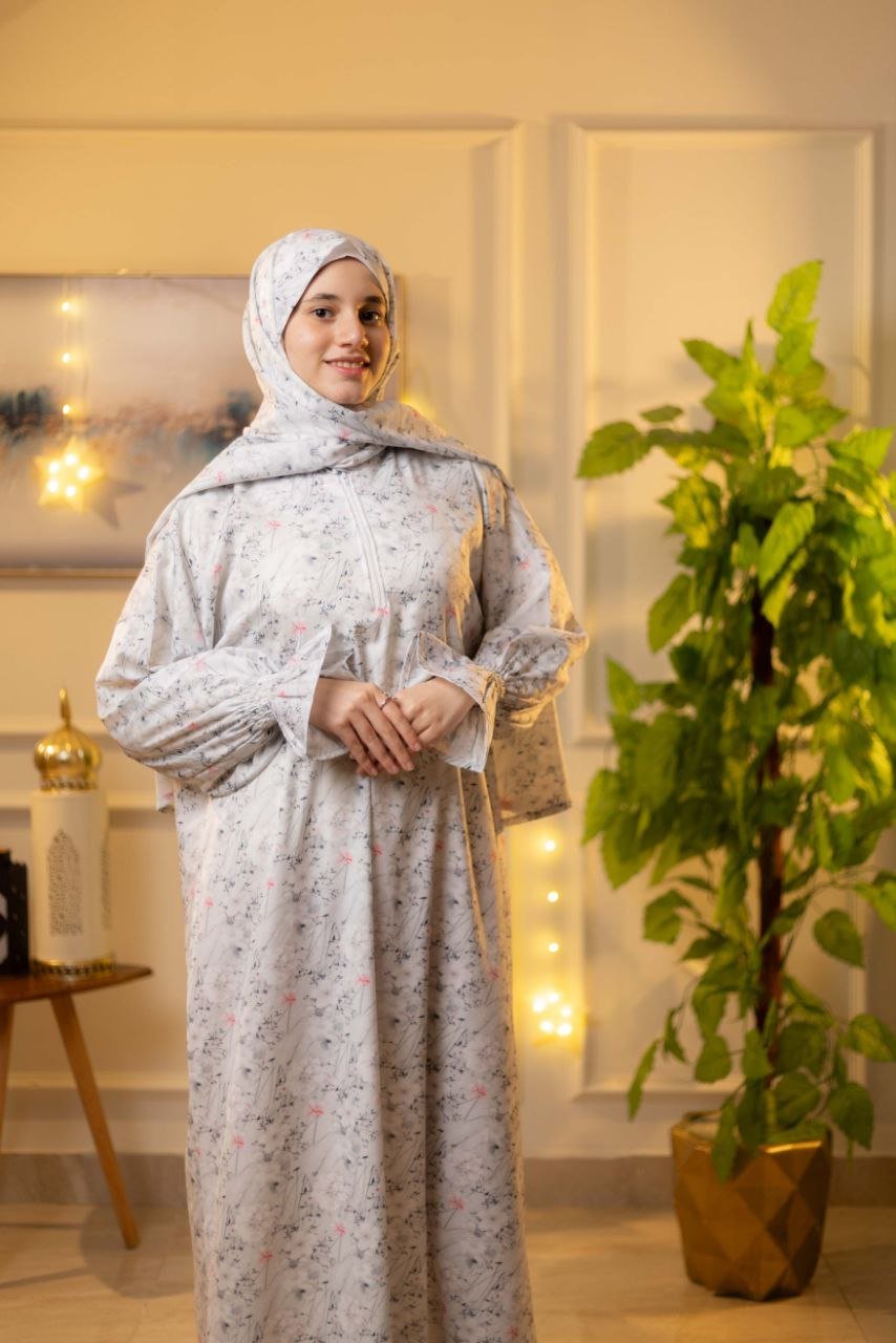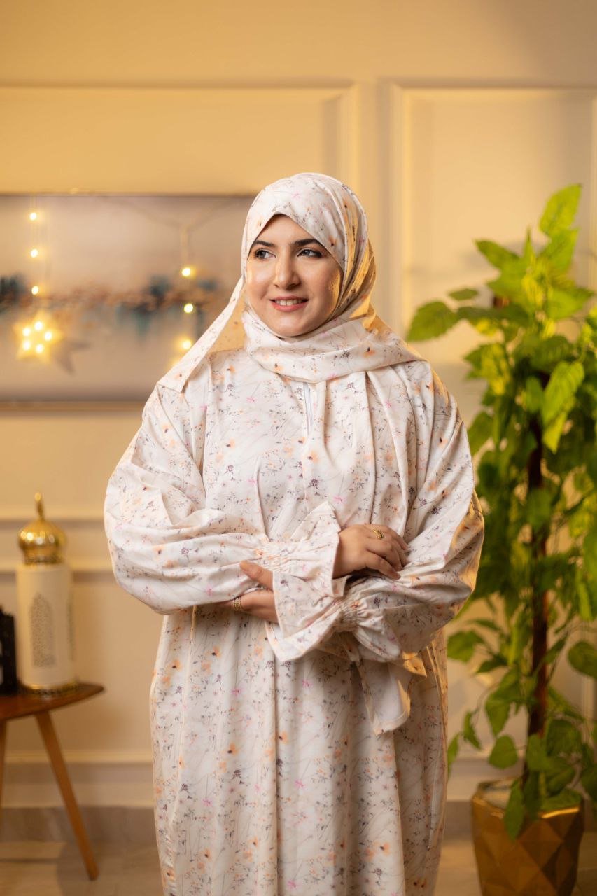 • مزود بسوستة من الصدر وكم استيك لسهولة الاستخدام وطرحة طويلة 175*65