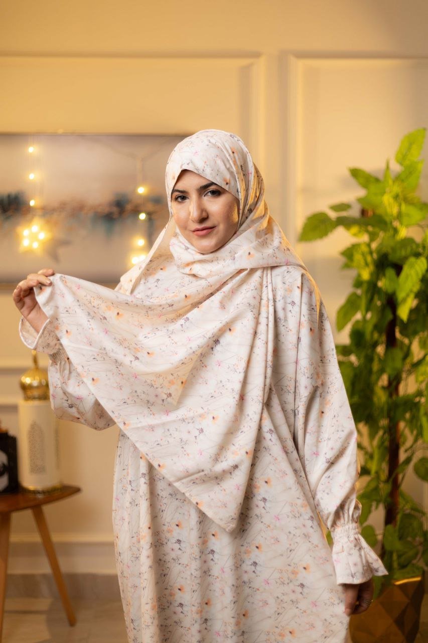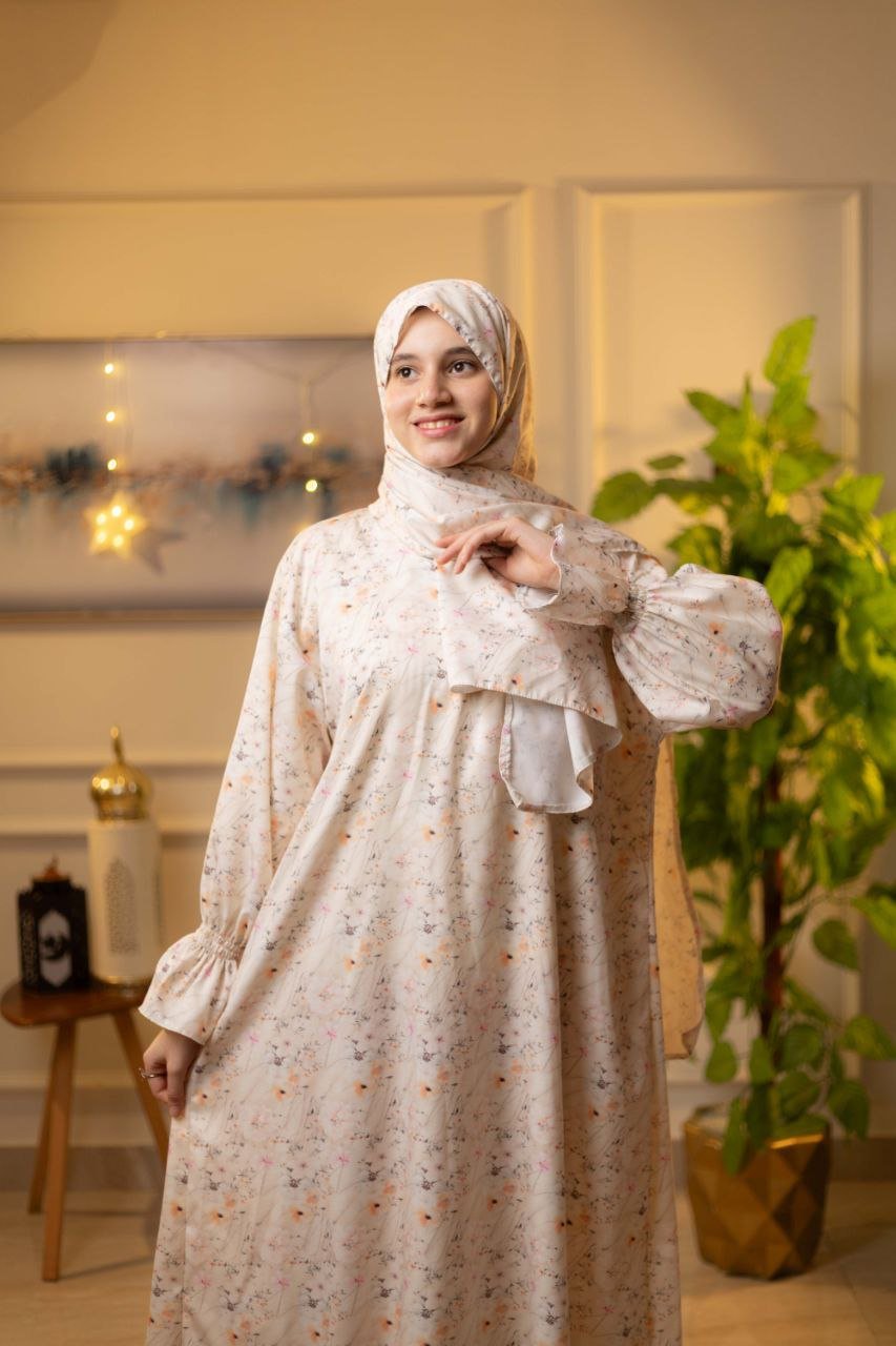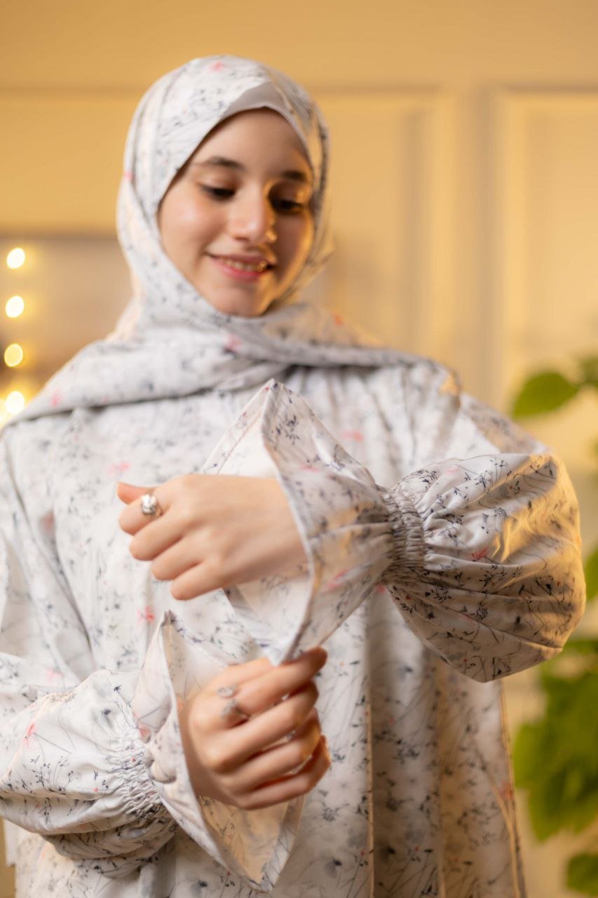 • مزود بسوستة من الصدر وكم استيك لسهولة الاستخدام وطرحة طويلة 175*65