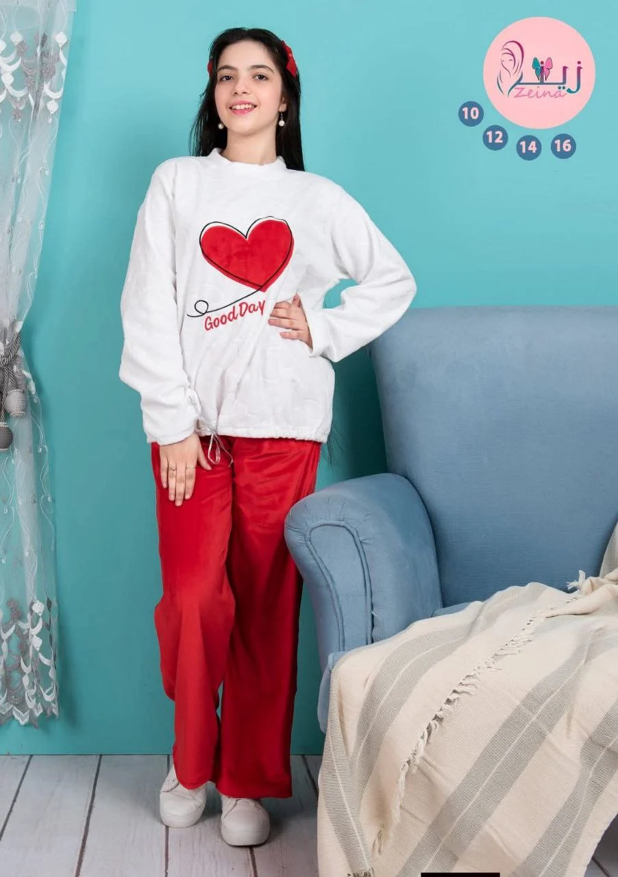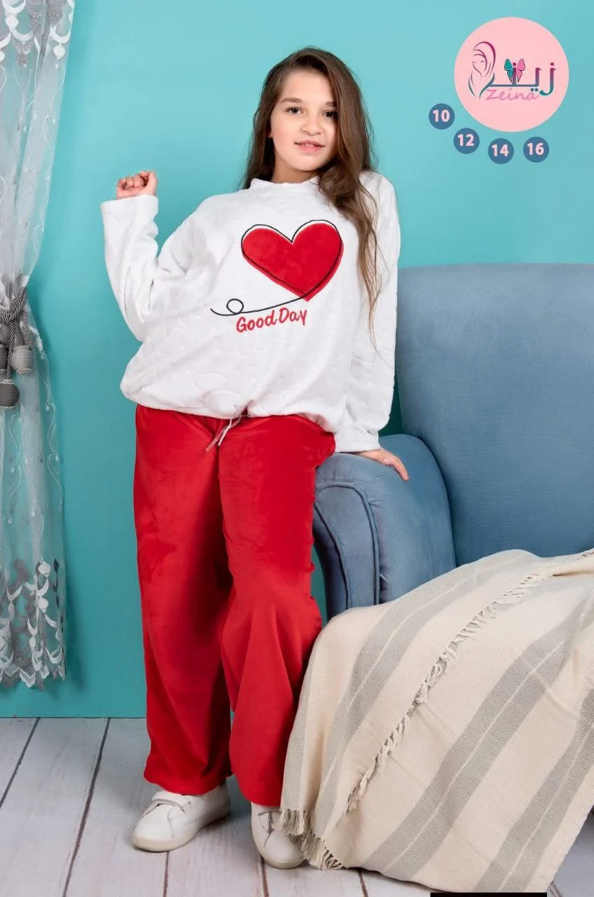 - توب سادة قطيفة ناعم تطريز قلب كمبيوتر بنطلون قطيفة سادة ناعم