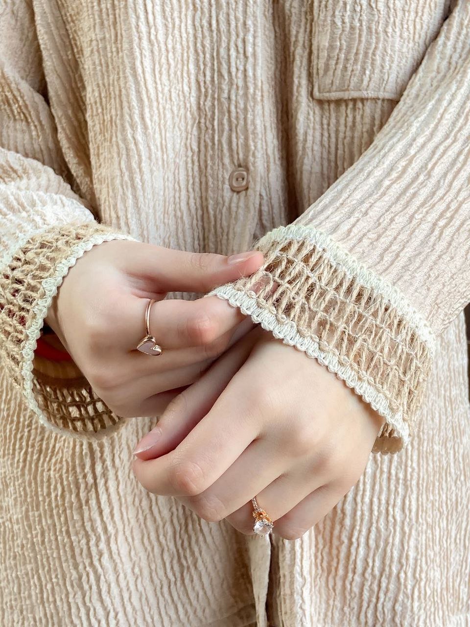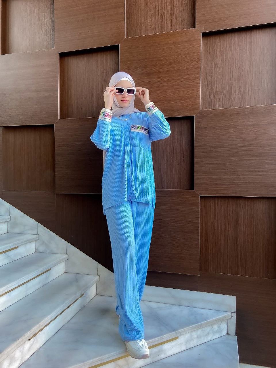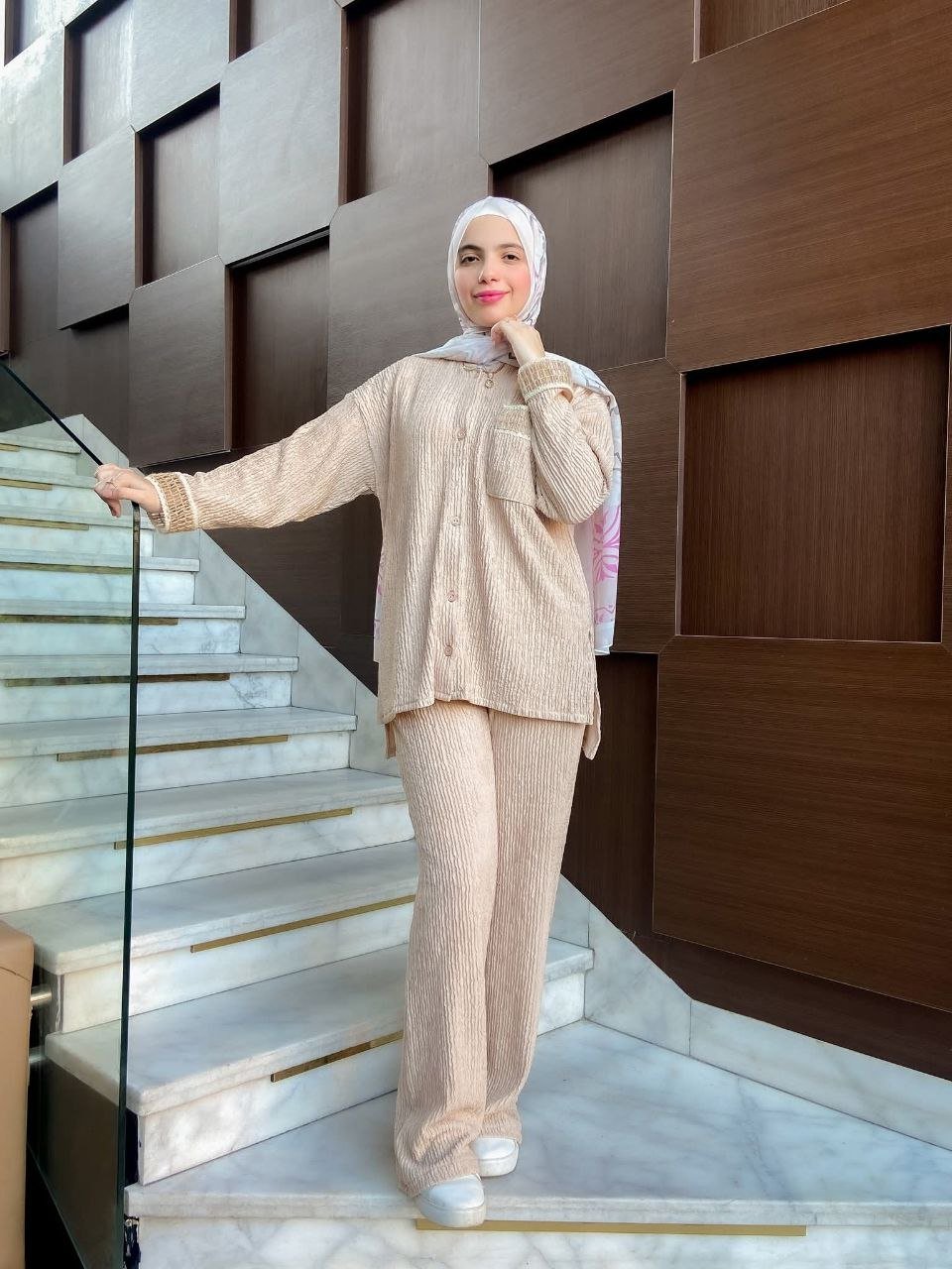 - ديزاين مكونة من قطعتين توب زراير أمامية جيب علوى – الكم مطعم بجوبير بنطلون وايد ليج – 2جيب